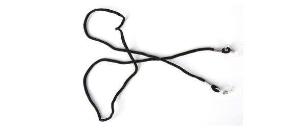 Håll koll på glasögonen med våra svarta snoddar. Glasögonsnodden har justerbara silikonhållare som passar alla skalmar.