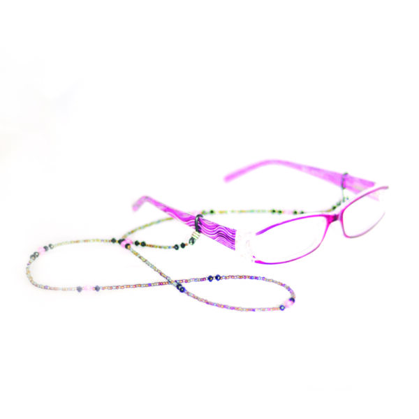 Håll koll på glasögonen med våra pärlsnoddar i en vacker färgmix. Pärlsnodden har justerbara silikonhållare som passar alla skalmar.